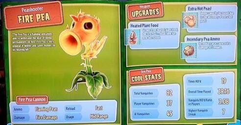 火焰豌豆:攻击带火焰属性,除了豆子的基础伤害外,火焰可以附着在目标身上,每秒4-5的伤害。射程为中距离。快速装填。