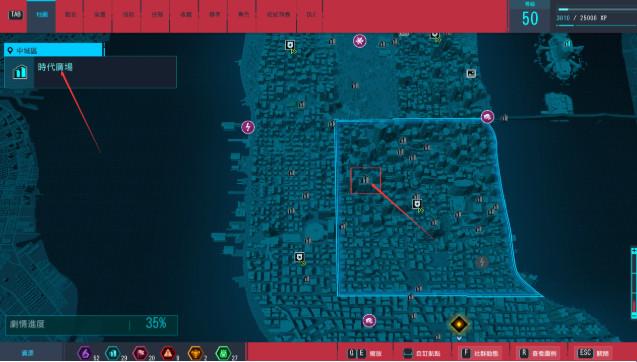 时代广场位于中城区的西北方,整张地图的正中心,如下图方框所示: