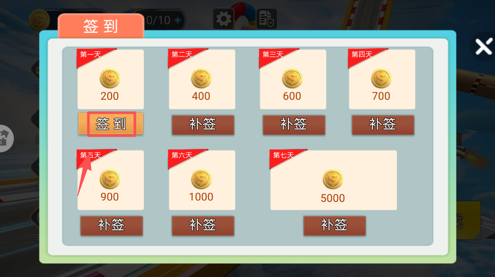 2、点击“签到”按钮,领取每日奖励,积累金币,为后续挑战做准备。