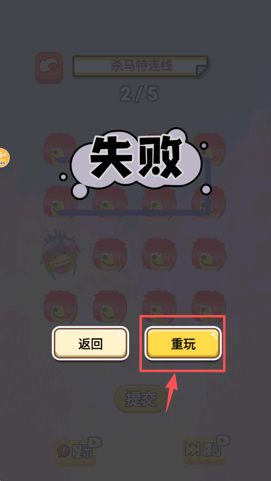4、如果游戏失败,点击“重玩”按钮,再次尝试或点击“提交”查看结果。