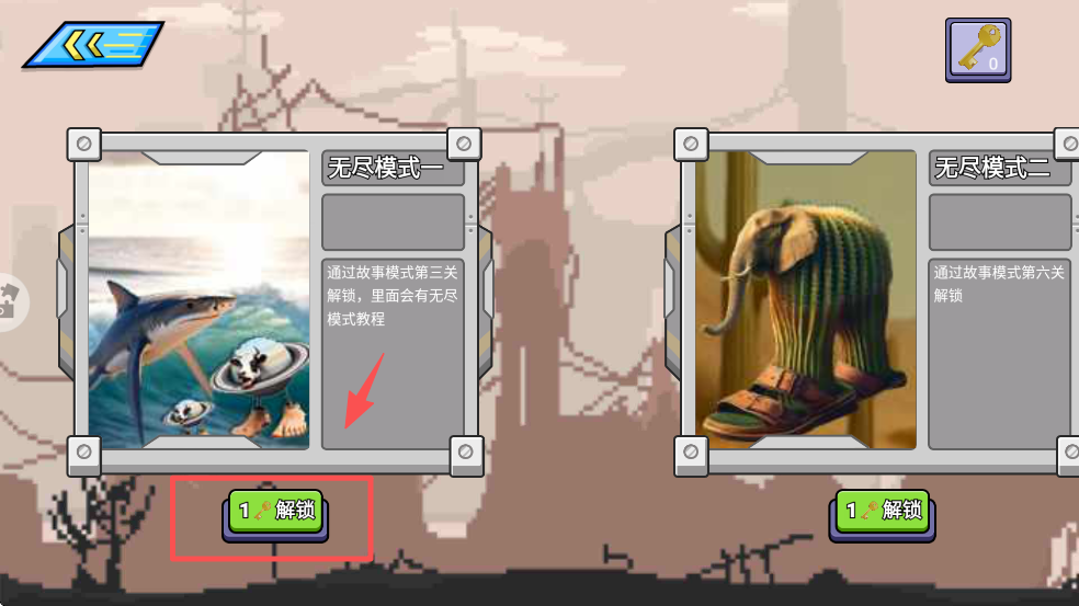 2、在模式选择界面,点击“无尽模式”,选择你想要进行的游戏模式。