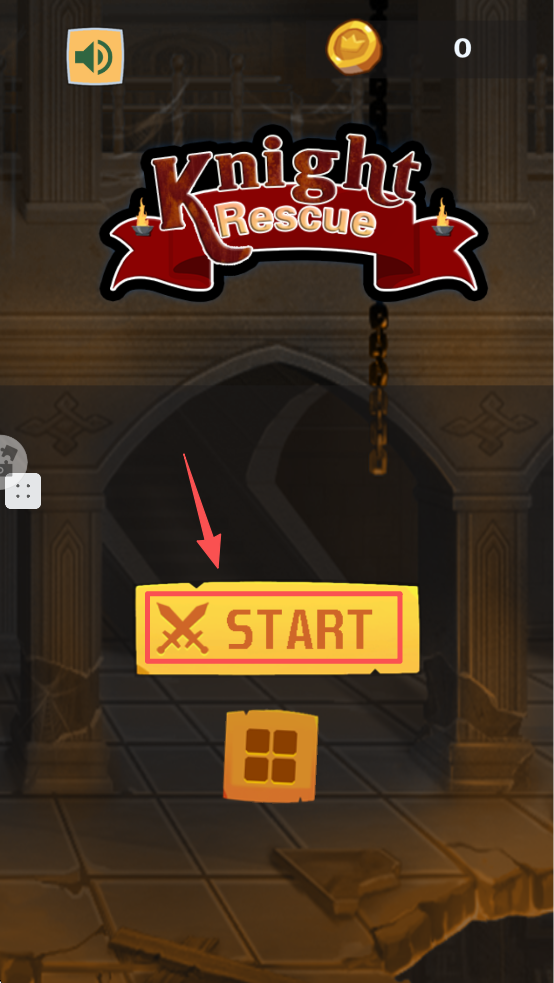 1、点击“START”按钮进入游戏,开始你的骑士救援冒险之旅。
