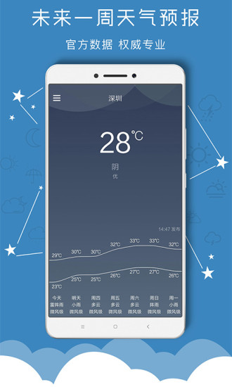提供全国各大城市及县区市天气信息,采用国内外多家气象机构数据,空气质量指数、污染指数、温度趋势等更加丰富、准确的天气信息!提供穿衣、洗车、紫外线、感冒、运动、旅游等生活指数,是您日常生活、出行旅游的首选APP! 1.气象权威: 实时同步更新中央气象局发布的各城市天气。 2.节省流量: 更新或查询天气预报时启动网络,其它时间关闭,节省流量,环保绿色工具. 3.生活贴士: 增加生活小贴士--您的贴心小秘书,温馨提醒您的吃穿住行! 4.查询城市: 可查询全国市、区、县城市天气,为您预告未来一周天气象情况! 5.当天天气: 可以显示实时温度,风向风速.