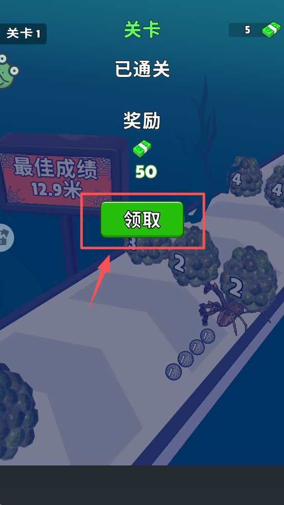 4、完成关卡后点击“领取”按钮,获取通关奖励。