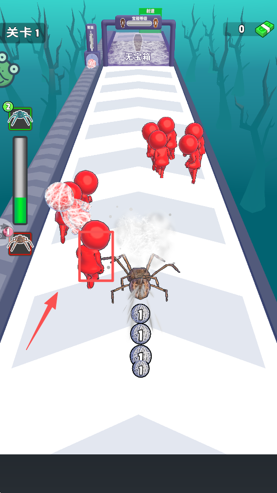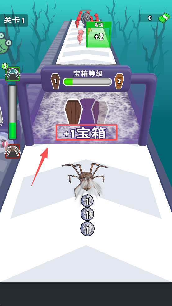 3、遇到宝箱时点击获取奖励,增强你的蜘蛛能力。