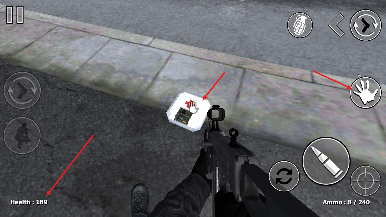 3、上方的按钮玩家可以使用手雷丢向丢人的位置。