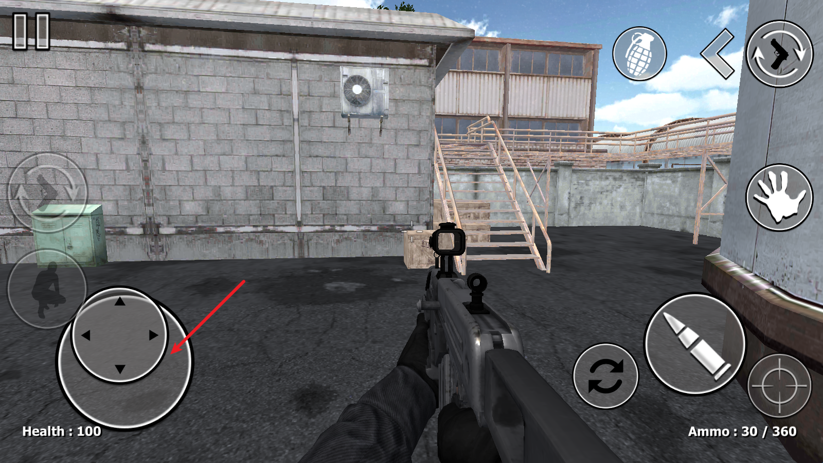 1、直接进入到游戏之后,玩家可以通过左边的摇杆来控制枪械位置。