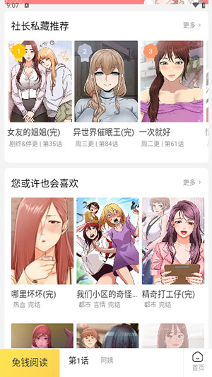 2、各种各样的推荐列表,因此您还可以免费看到所有人喜欢的漫画;
