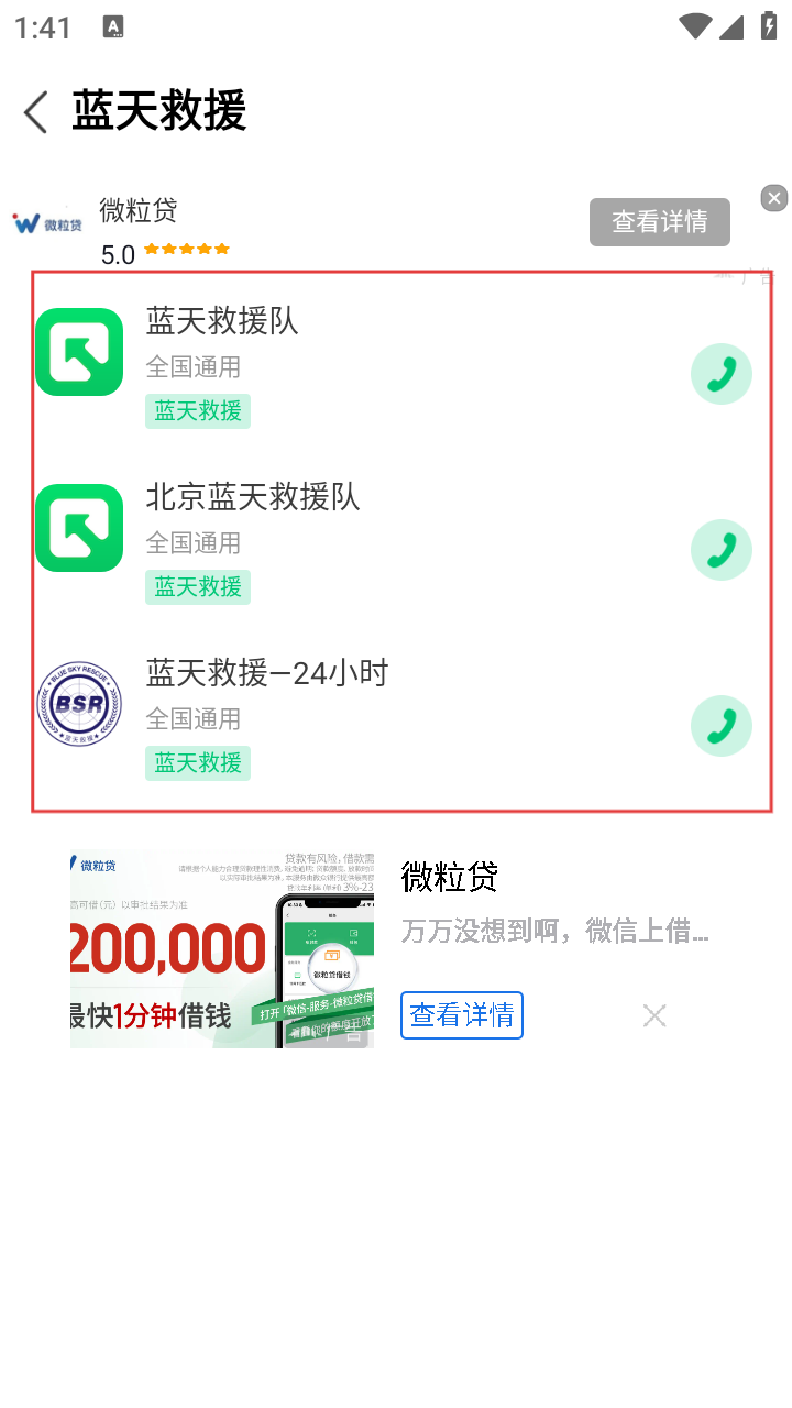2、在蓝天救援页面,可查看蓝天救援队、北京蓝天救援队、蓝天救援-24小时等相关救援队伍信息。