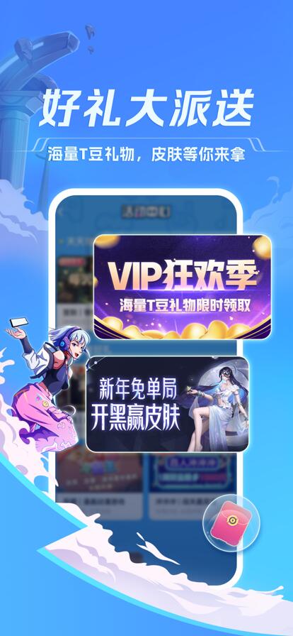 1、好礼大派送,海量T豆,皮肤等你来拿。