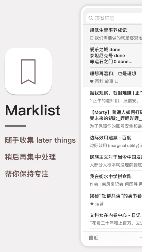 Marklist正是为此而生的,它提供了一个极简的列表,用来帮助你存放所有这些「later things」,并提醒你稍后处理它们
