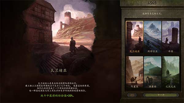 13、此处提供瓦兰蒂亚、帝国、巴丹尼亚、斯特吉亚等角色文化,玩家随心选择即可;
