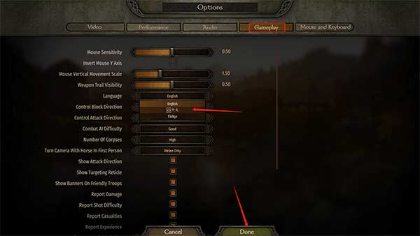 9、最上方选中Gameplay,找到Language下的简体中文,然后保存游戏;