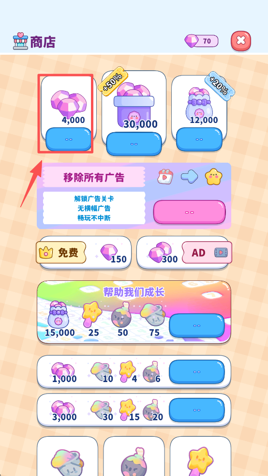 4、在商店中购买道具,如移除广告或获取更多游戏币,提升游戏体验。