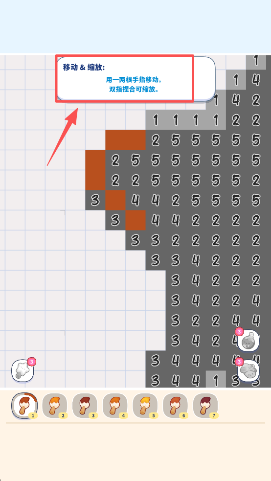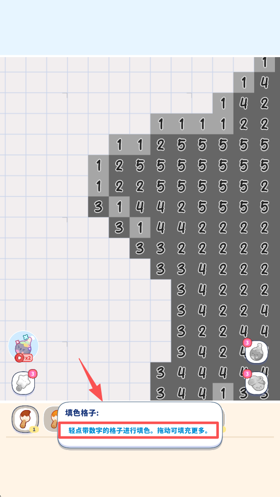 2、轻点带数字的格子进行填色,拖动可填充更多相同数字的格子。