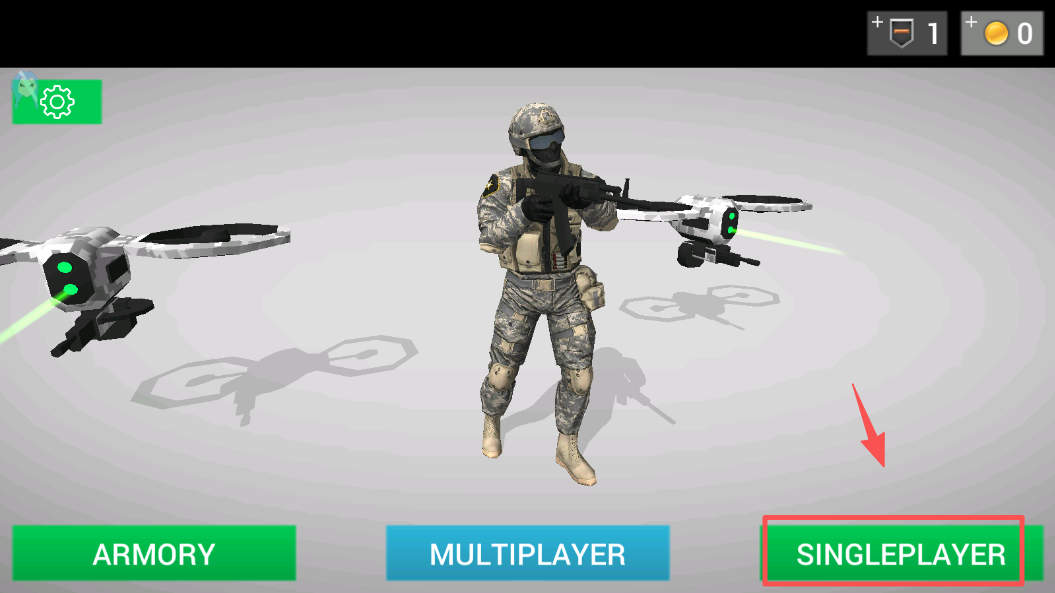 1、点击“SINGLEPLAYER”按钮,选择单人游戏模式,开始你的战斗。