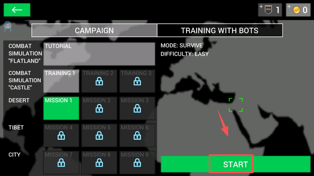 2、在模式界面选择任务后,点击 “START” 按钮,开始游戏任务。