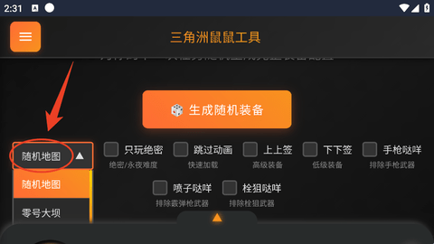 4、然后就可以使用啦,自己选择地图,勾选,然后生成随机装备。