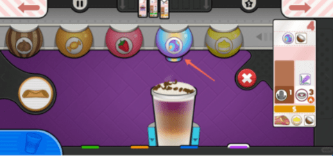 重点在倒牛奶和咖啡的时候尽量对准中间的透明区域,只要保证倒在在这个区域就不会扣分,如图,最终效果如图。解决倒太快的问题就是让旁边的指针不要超过绿色的区域,到达橙色的地方可以停一下点一下让指针保持在此区域不要到红色以上。