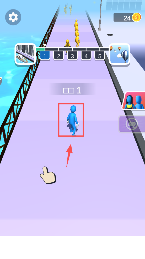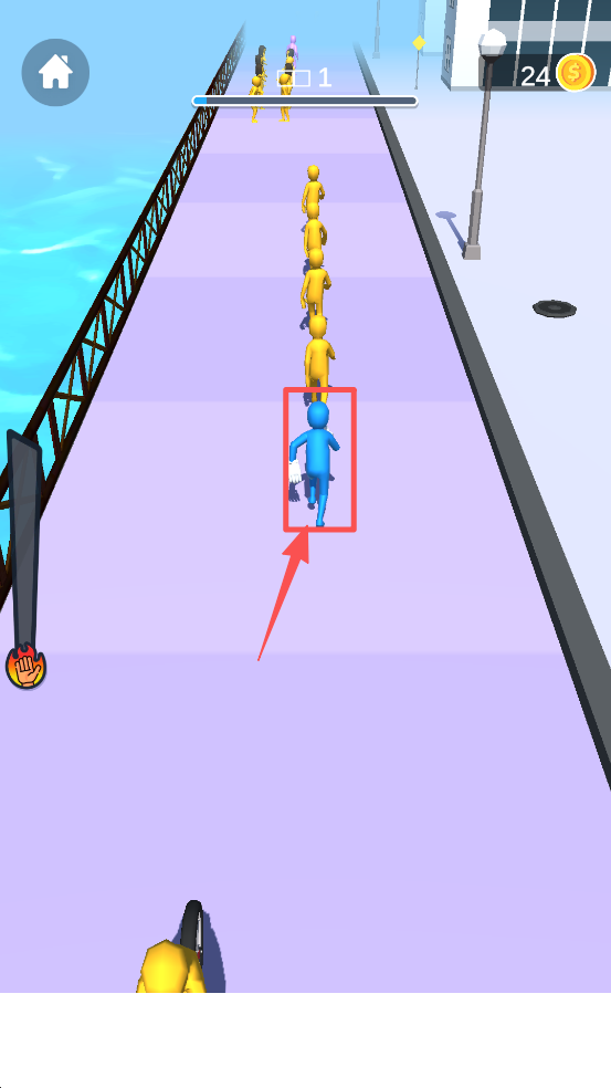 1、点击屏幕上的虚拟摇杆控制角色移动,避免被其他角色撞击。
