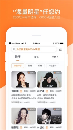 安卓火了演艺手机app是一款明星代言直约手机平台。火了演艺app为艺人、艺人经纪公司以及活动主办方三方的合作架起了一座便捷的桥梁。是一个安全、稳定而且权威的平台。商家有商演,需要代言都可以上火了演艺,绝对以最优惠的价格请给到明星。手机平台一键直约,平台全额担保大大降低了风险;并且合作的过程实时跟进全程跟踪,让合作更有保障;7000+的明星艺人资料非常齐全,相邀请谁就邀请谁,不管是歌手、演员、还是主持任这里都有,并且附带明星的全部介绍资料。有需要的用户,赶紧点击下载吧。