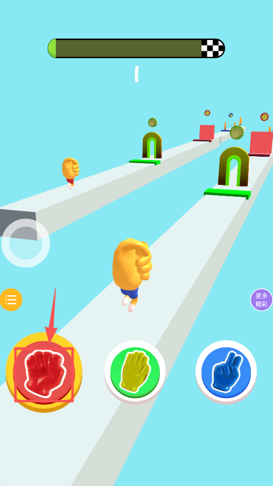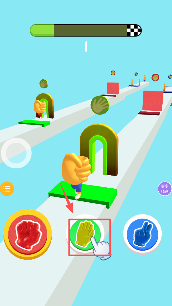 4、选择好操作手势后,点击绿色手掌图标,开始您的跑酷冒险。