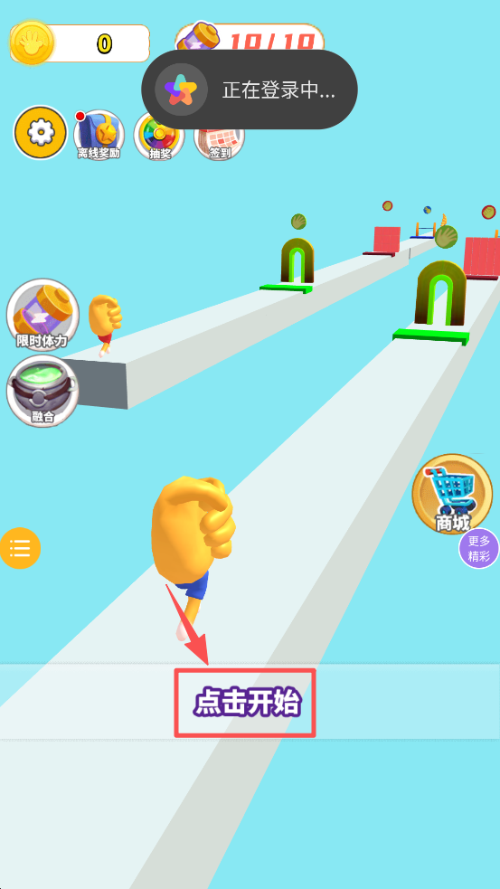 1、点击“点击开始”按钮,等待游戏加载完成,准备进入游戏。