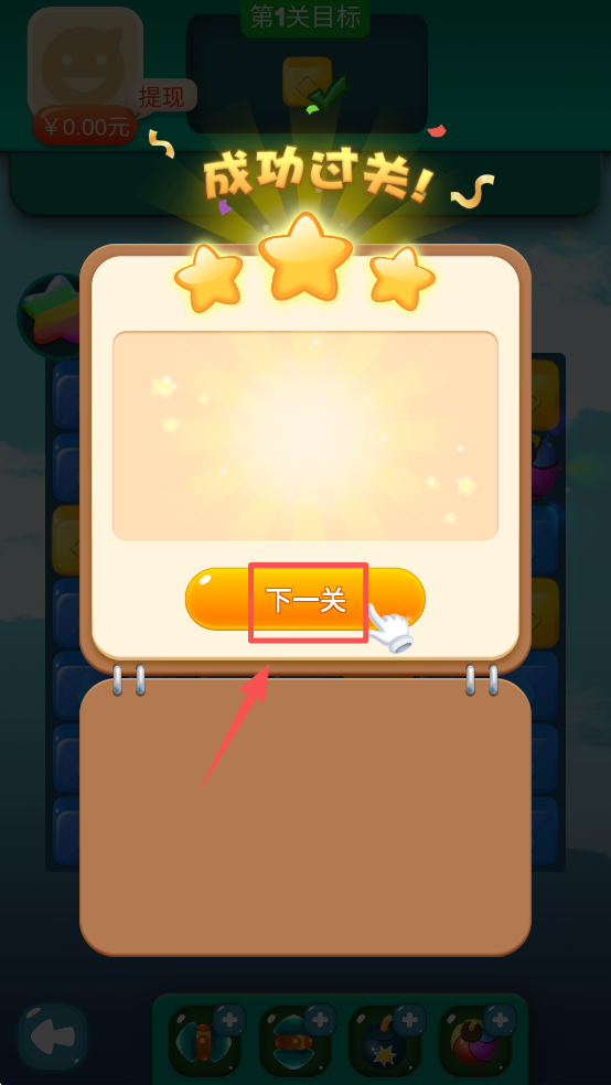 4、成功过关后,点击“下一关”按钮,继续挑战或领取奖励。