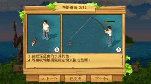 2、接近深蓝色的水开始钓鱼,等与咬钩后触摸点击拖动鱼漂。