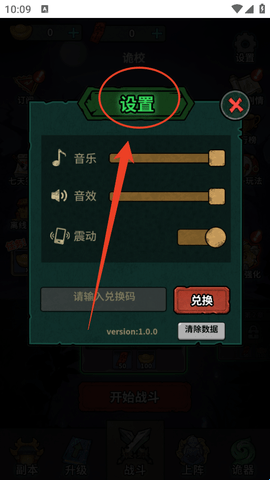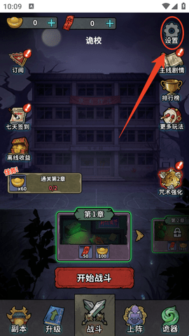 1、进入游戏“战斗”界面之后,点击右上角的“设置”。
