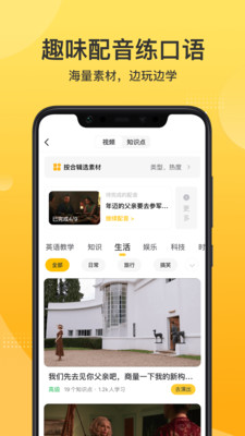 3、趣味配音学英语,一边看精彩片段,一边学习地道发音。