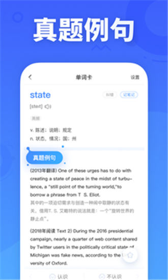 2.软件严谨地按照科学记忆的心理过程设计,初记、复习和测试环环相扣,保证了您从识别、保持到再认的高效性。同时,软件还提供助记法、例句、英文释义、同反义词或美语发音等多种辅助记忆手段。