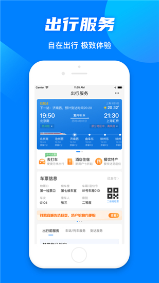 2、随时随地购买火车票、退票,火车票数据来源12306官方网站,数据同步快速,及时、准确。