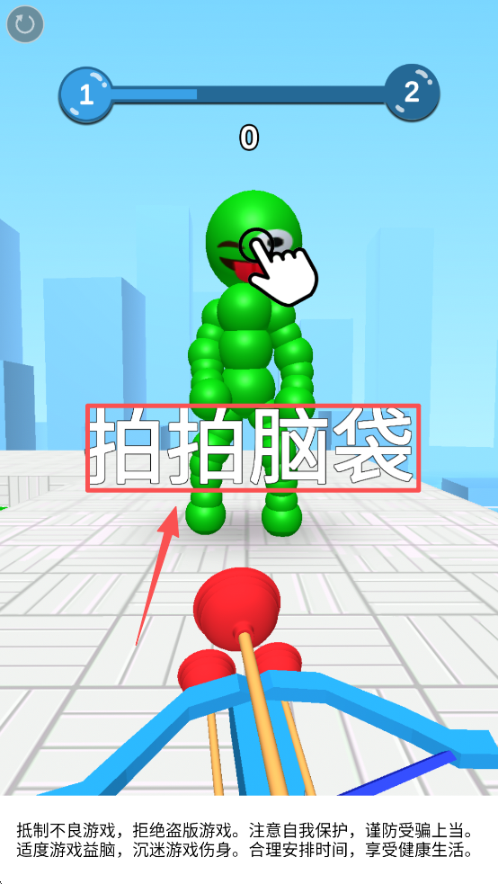 2、拍打敌人。点击敌人,使用“拍拍脑袋”功能,对敌人进行攻击。