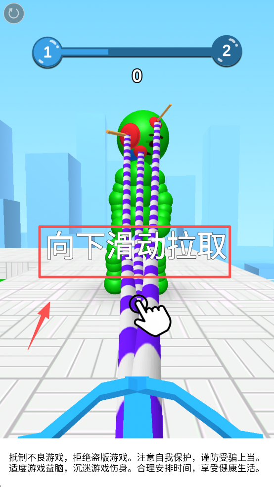 3、向下滑动拉取。当敌人被拉到面前时,向下滑动屏幕,进行拉取动作。