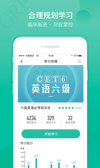 1、智能复习:只有最需要复习的单词,才会提示您需要复习,帮助您省去不必要的重复复习。