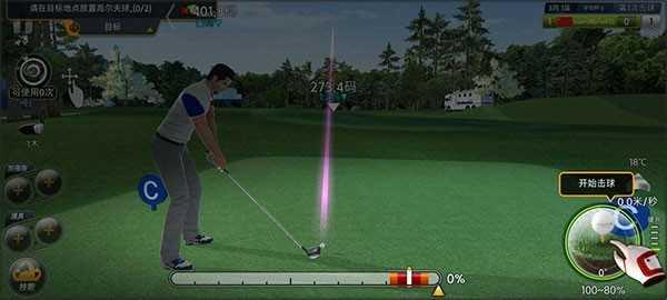 4、玩家尝试重击球和轻击球的区别来根据球的距离来使劲。