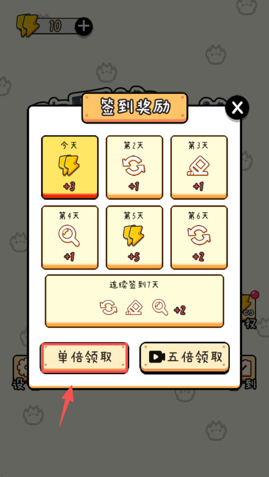 1、查看签到奖励,点击“单倍领取”按钮获取奖励。