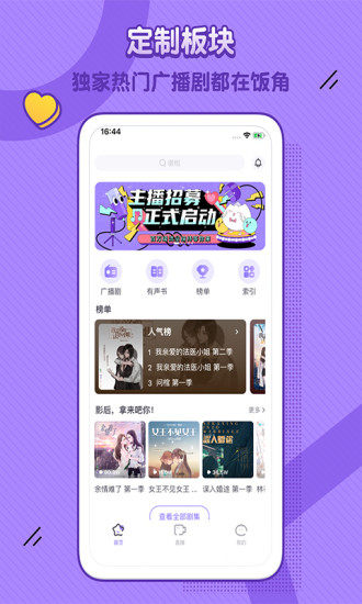4、它也为您提供各种受欢迎的剧集,您可以在线搜索各种广播主题,也可以聊天。