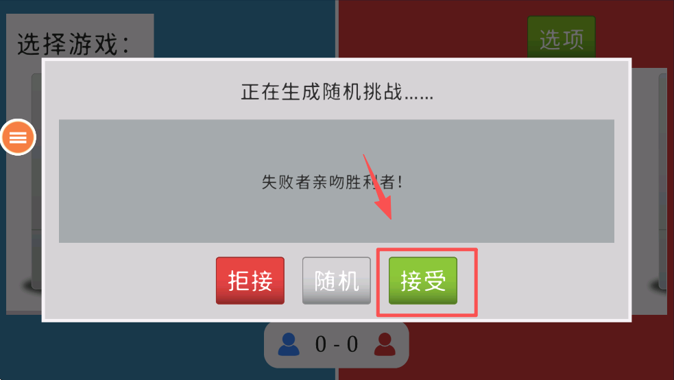 2、点击“接受”按钮,同意随机挑战规则,准备开始游戏。