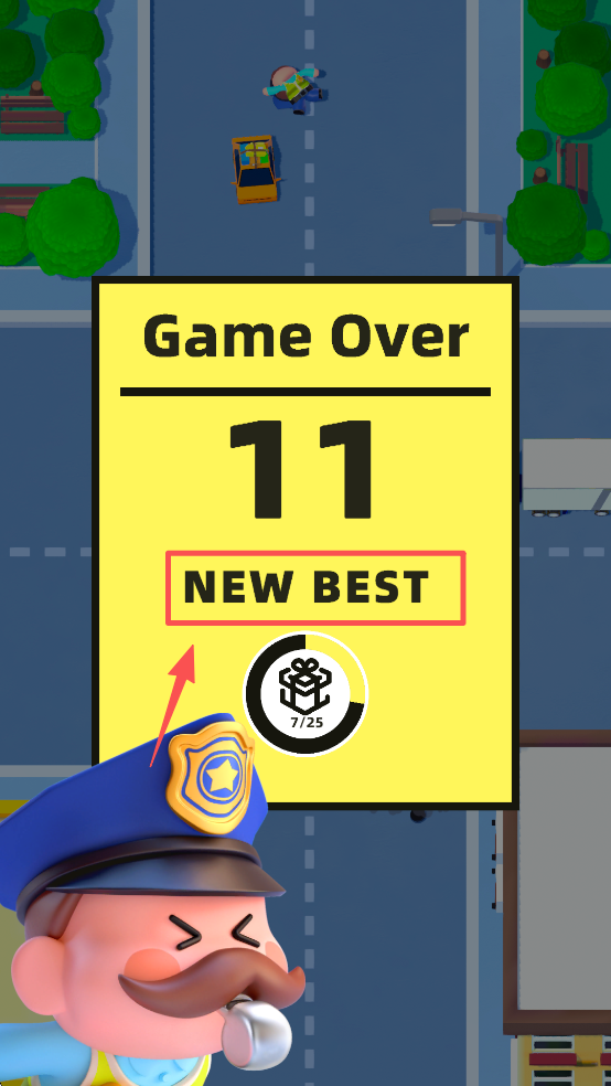 4、当游戏结束时,查看成绩,点击“NEW BEST”按钮以记录新的最佳成绩。