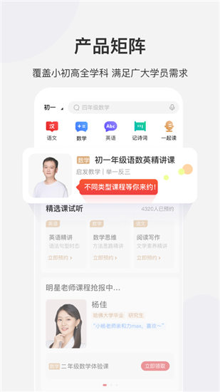 安卓希望学最新版是一款非常火爆的在线课程培训学习软件,这款软件专为广大小初高中用户打造,提供了全学科的直播课程培训服务,拥有超多一线名师在线授课,拥有专业的教研团队打造课程内容,让用户可以更好的提升学习能力。希望学最新版可以根据自己的需求来选择相对应的年级和科目课程,拥有多个名师等你来选择,多元化的课程内容一应俱全,基础巩固,能力提升,专项提升,考前冲刺等一应俱全。希望学最新版采用了趣味的直播互动课程,用户可以在线互动学习,还有陪伴式的班级学习等你来体验,喜欢的话千万不要错过,感兴趣的用户快来下载体验。