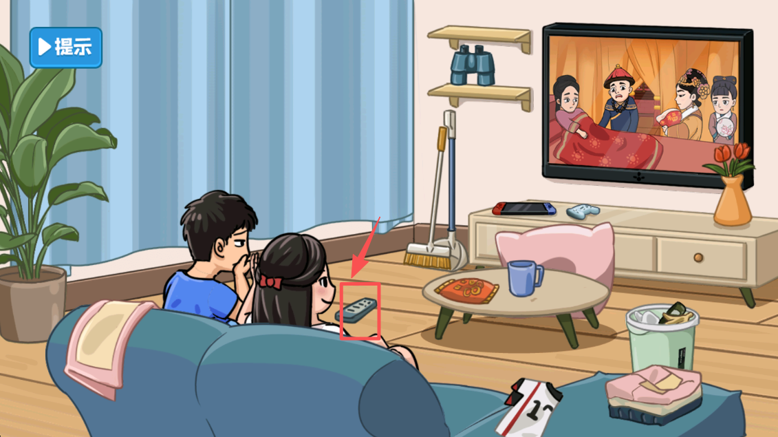 4、找到并点击桌上的遥控器,尝试改变电视频道,寻找线索。