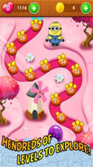 1、融合经典泡泡龙玩法与小黄人IP元素,打造独特而亲切的闯关体验,结合传统与创新,提供新颖玩法。