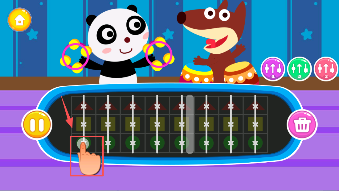 3、提供多乐器合奏功能,小朋友可以同时操作两三种乐器,自由搭配音效,创作属于自己独特的音乐片段。