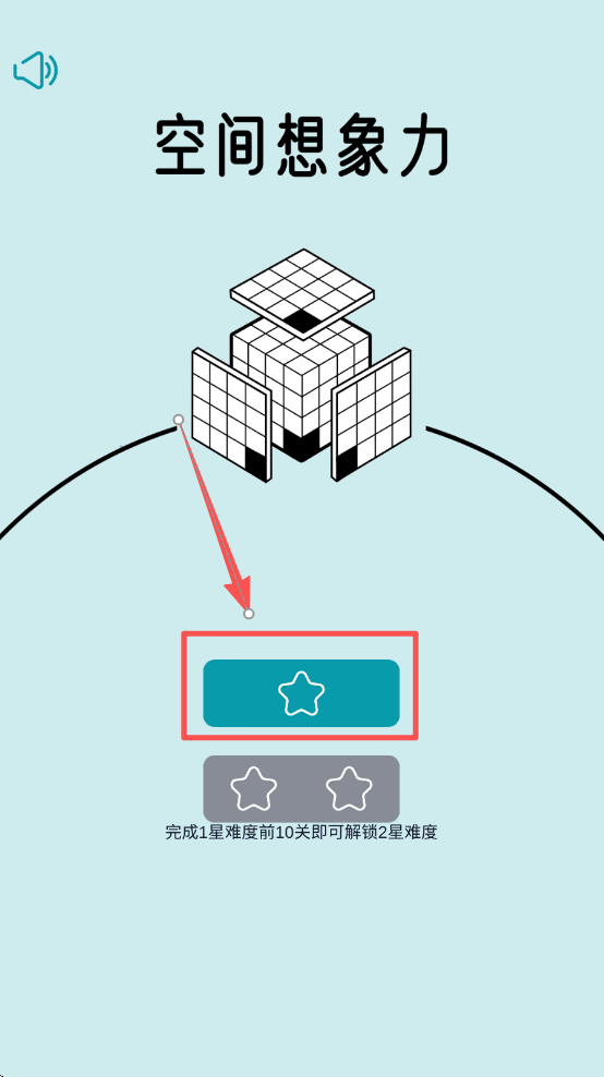 1、点击星星按钮,选择难度级别,开始你的空间想象力挑战。