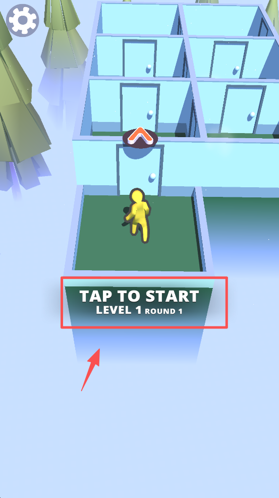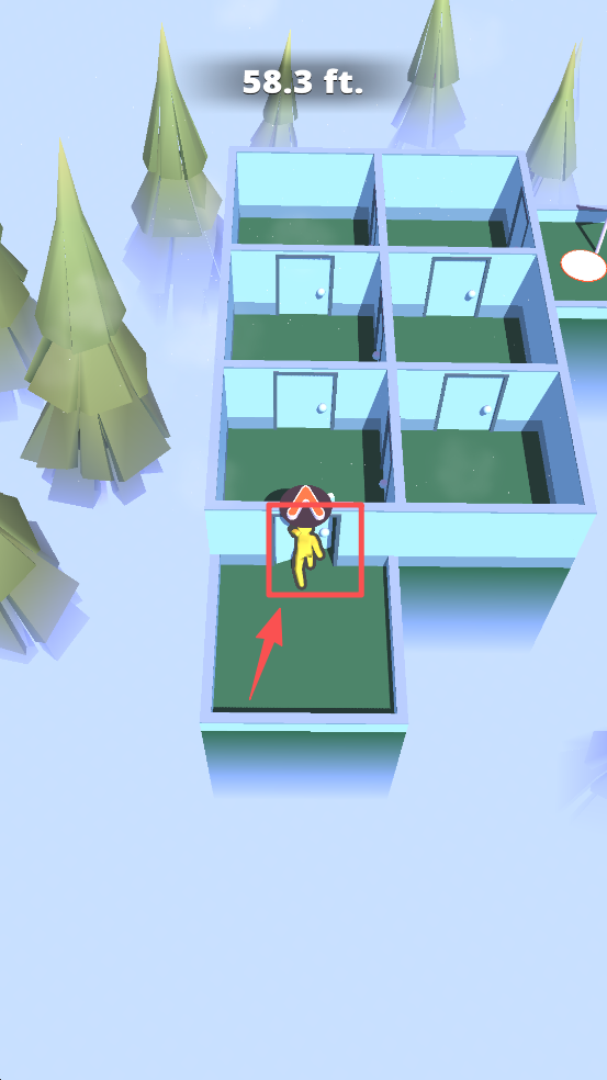 3、引导黄色小人朝着箭头指示方向前进,在迷宫中探索。