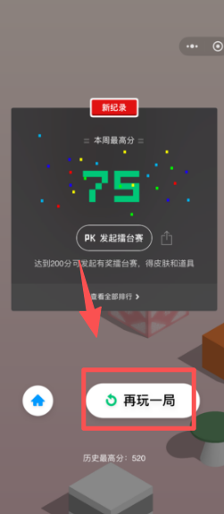 4、游戏结束后点击“再玩一局”,继续挑战,刷新你的最高分。