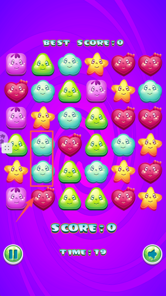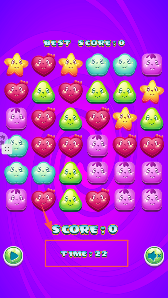 3、继续寻找并消除匹配的糖果组合,注意时间限制,尽可能获得更高分数。