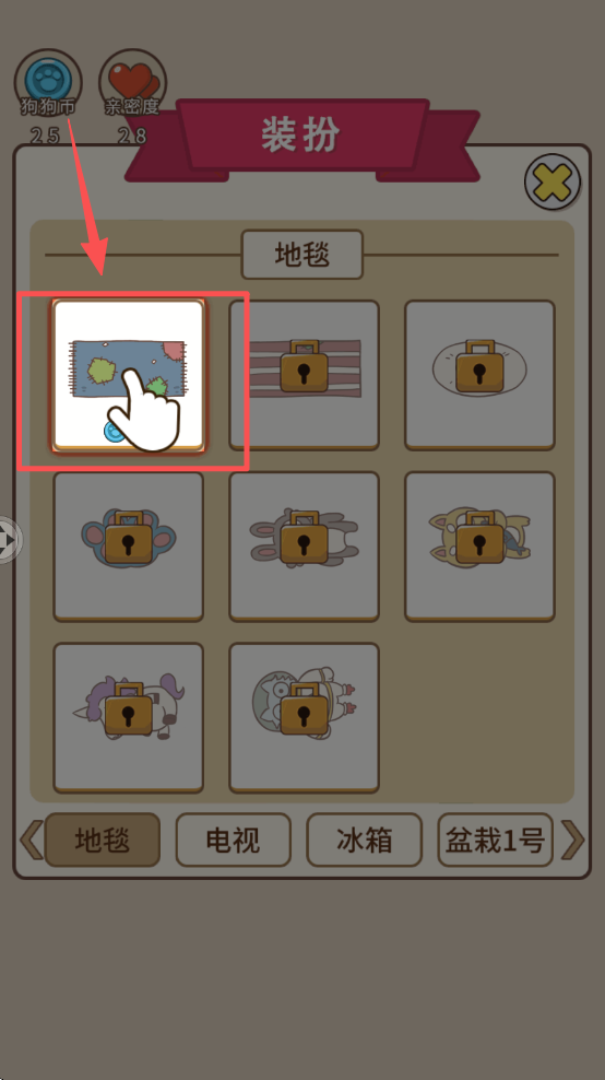 3、点击屏幕下方的布置房间按钮,进入装扮界面。